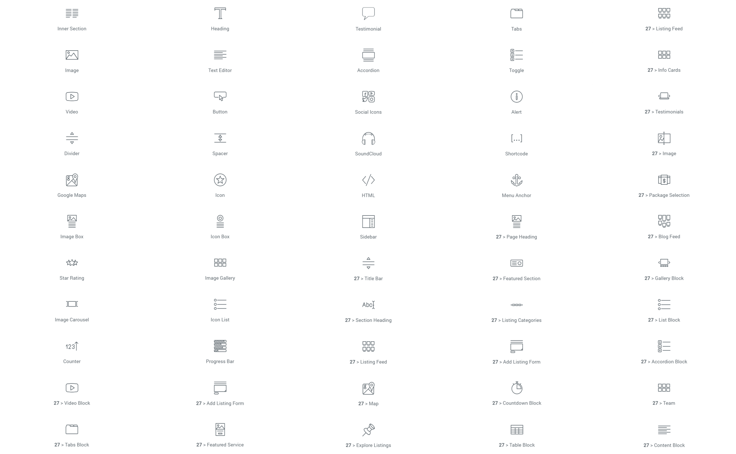 All elementor widgets